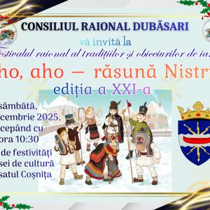 Consiliul raional Dubăsari invită locuitorii raionului, iubitorii de tradiții și oaspeții să participe la Festivalul raional al tradițiilor și obiceiurilor de iarnă „Aho, aho – răsună Nistrul”, ediția a XXI-a.