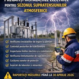 În acest sens, Agenția Națională pentru Reglementare în Energetică (ANRE) solicită tuturor consumatorilor noncasnici care dețin în proprietate posturi de transformare și linii electrice aeriene să prezinte informații privind măsurile întreprinse pentru pregătirea acestor instalații.