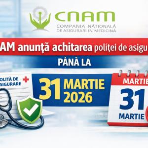Termen-limită pentru achitarea primei de asigurare obligatorie de asistență medicală în sumă fixă – 31 martie 2026 ![]() Direcția Teritorială Centru a Companiei Naționale de Asigurări în Medicină (CNAM) informează că până la 31 martie 2026 (inclusiv) cetățenii care nu sunt angajați și nu sunt asigurați de Guvern au obligația de a achita prima de asigurare obligatorie de asistență medicală (AOAM) în sumă fixă. Pentru anul 2026, prima anuală este de 12 636 lei, conform legislației în vigoare. Pentru anumite categorii de persoane care se asigură individual (inclusiv proprietari de terenuri agricole, fondatori de întreprinderi individuale sau gospodării țărănești, titulari de patentă, persoane cu activitate independentă, cetățeni neangajați etc.) sunt prevăzute facilități la achitare, în condițiile legii. Atenție: persoanele care se încadrează în aceste categorii și sunt concomitent pensionari sau persoane cu dizabilități nu sunt scutite de plata primei, fiind obligate să achite AOAM în sumă fixă. Persoanele neangajate care exercită profesii liberale (avocat, notar, mediator, executor judecătoresc, expert judiciar, interpret, traducător, administrator autorizat, medic de familie independent, nomazi digitali) achită prima integrală de 12 636 lei. Începând cu 1 aprilie 2026, persoanele care nu și-au onorat obligația de plată vor achita prima integrală, precum și penalitate pentru fiecare zi de întârziere, conform legislației fiscale. Prima AOAM poate fi achitată prin MPay, la oficiile poștale, terminalele de plată sau la serviciile teritoriale CNAM. La efectuarea plății se indică IDNP-ul. Statutul de persoană asigurată se acordă din data achitării primei și este valabil până la 31 ianuarie 2027. |